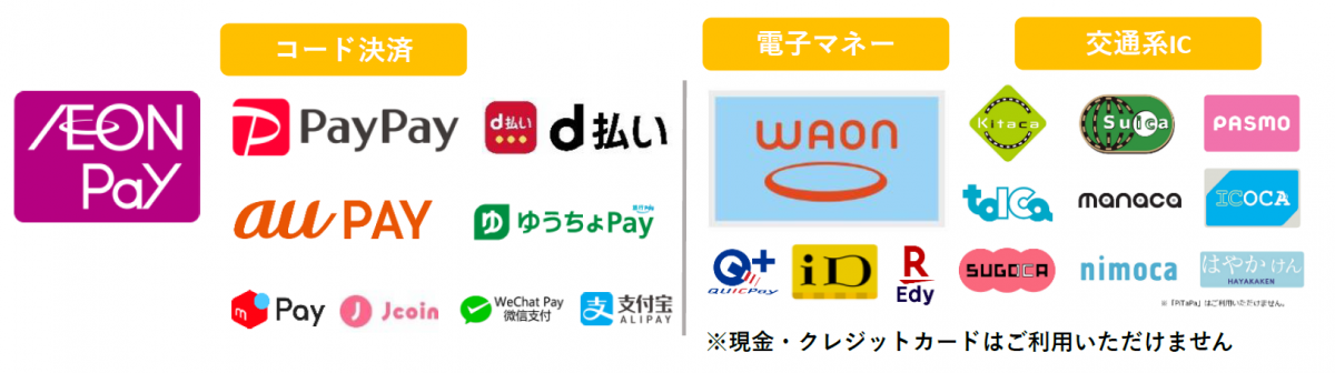 交通系電子マネーとQRコード決済がご利用いただけます。