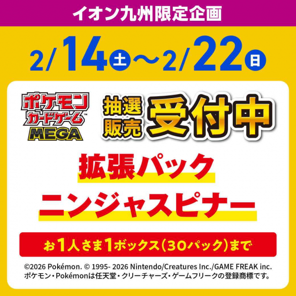【iAEONアプリ】ポケモンカードゲームMEGA 拡張パック ニンジャスピナー抽選販売のお知らせ