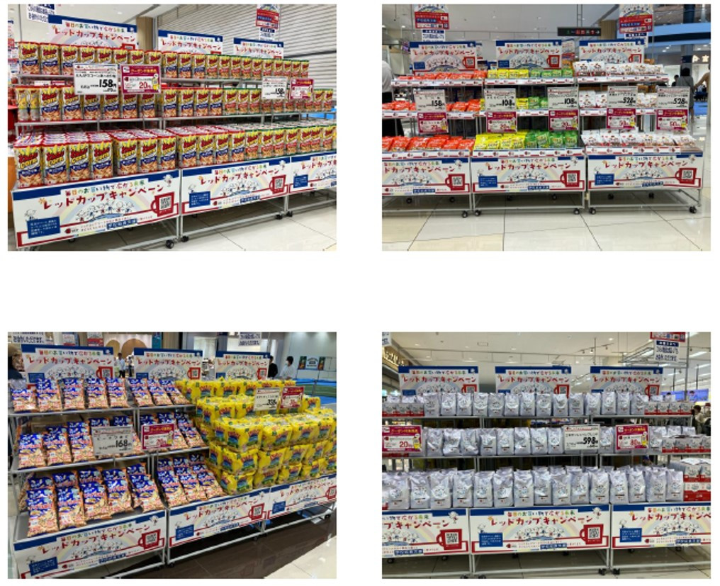 この取り組みは、毎日のお買物を通じてお客さまと一緒に社会貢献を進めたいという思いから、2021年よりスタートし、今年で5年目を迎えました。開始当初は5社の企業さまと始めた活動でしたが、年々賛同企業が増え、2025年は過去最多となる16社と協力し、10月の「世界食料デー」月間に合わせて、九州7県でレッドカップマーク対象商品の売場を拡大して販売しています。