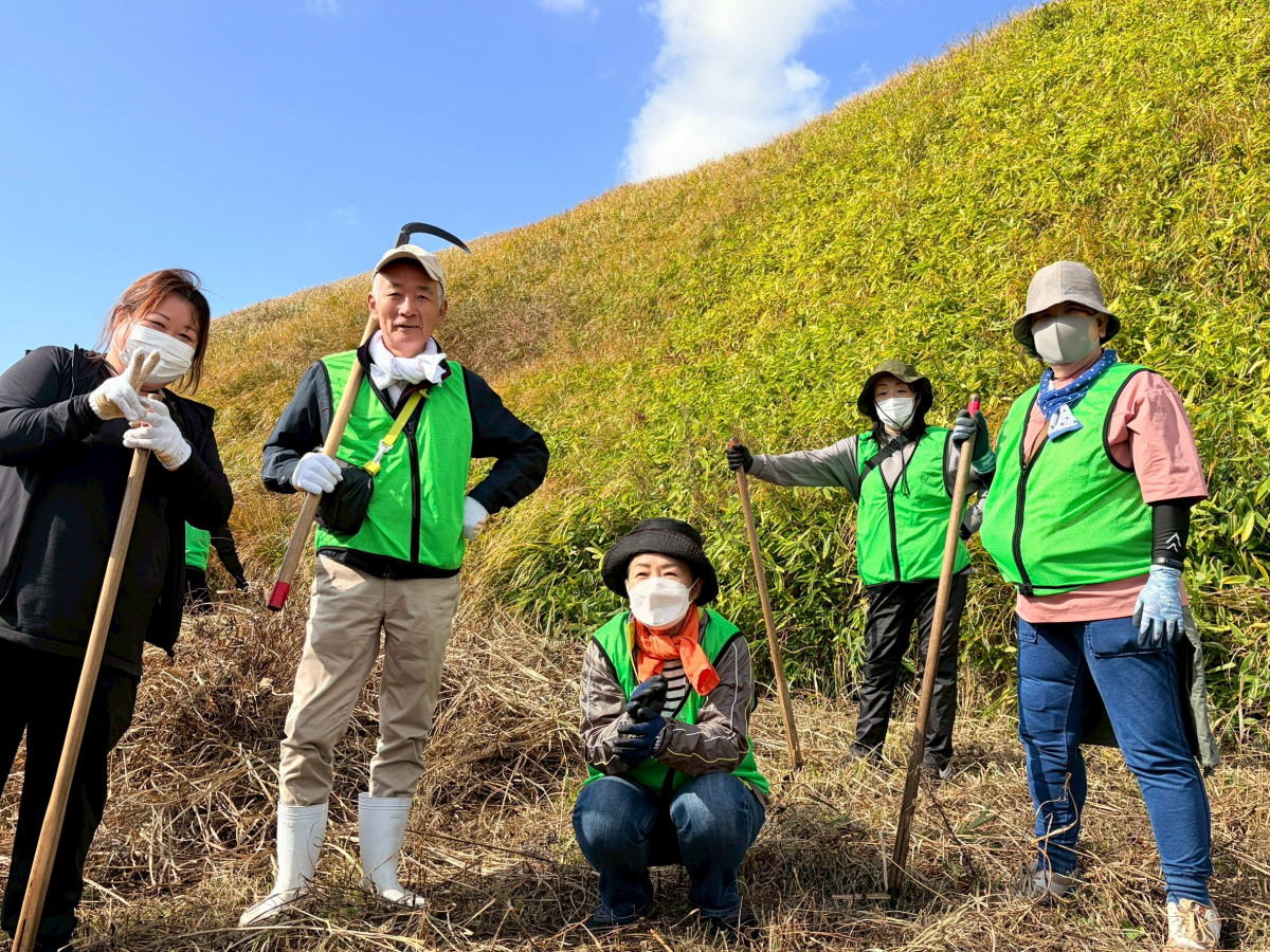 11月9日(日)、イオン九州の従業員13名とイオンチアーズクラブ熊本・大津のメンバー28名が、阿蘇の自然を守る「阿蘇草原保全活動」(熊本県阿蘇市)に参加しました。