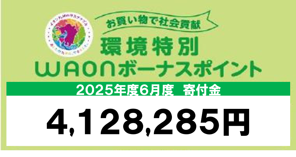 イオン九州は、2025年5月30日(金)から6月30日(月)の期間に実施した「環境特別WAONボーナスポイント」のお客さまに付与されるWAONボーナスポイントと同額を下記の団体へ贈呈いたしました。
